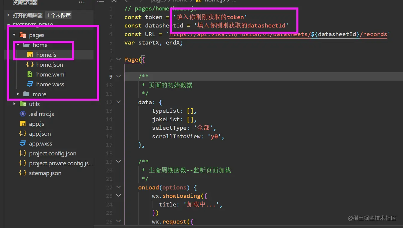 如果想将小程序做为私人用的话,可以增加一个页面用于输入token和和datasheetId,输入后存在本地缓存当中。