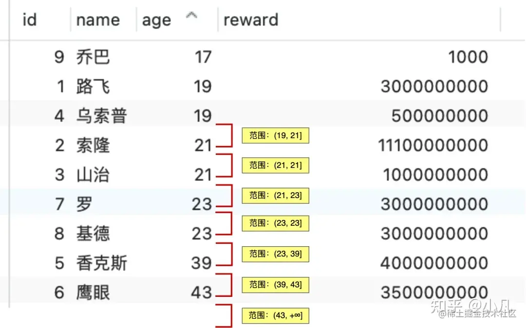 分析 age 索引加锁的范围时,要先对 age 字段进行排序。