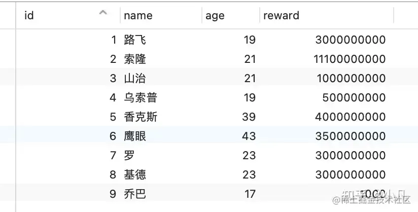 现在有一张用户表(t_user),表里只有一个主键索引,表里有以下行数据: