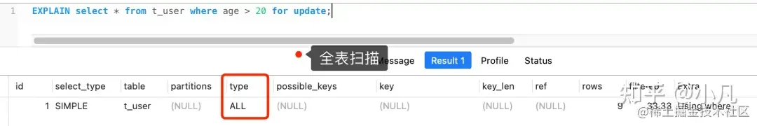为什么只是查询年龄 20 岁以上行记录,而把整个表给锁住了呢?