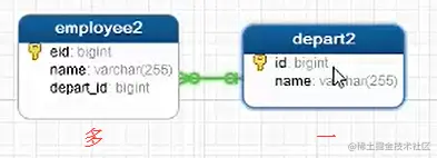部门表(depart)和员工表(employee),一个部门可以有多个员工,一对多关系可以采用如下两种实现方法。