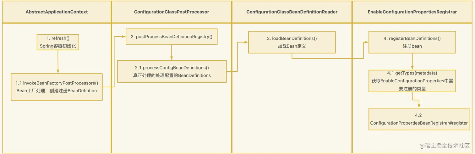 注解@EnableConfigurationProperties源码中import了EnableConfigurationPropertiesRegistrar类,那么它是在什么阶段创建出BeanDefinition呢?