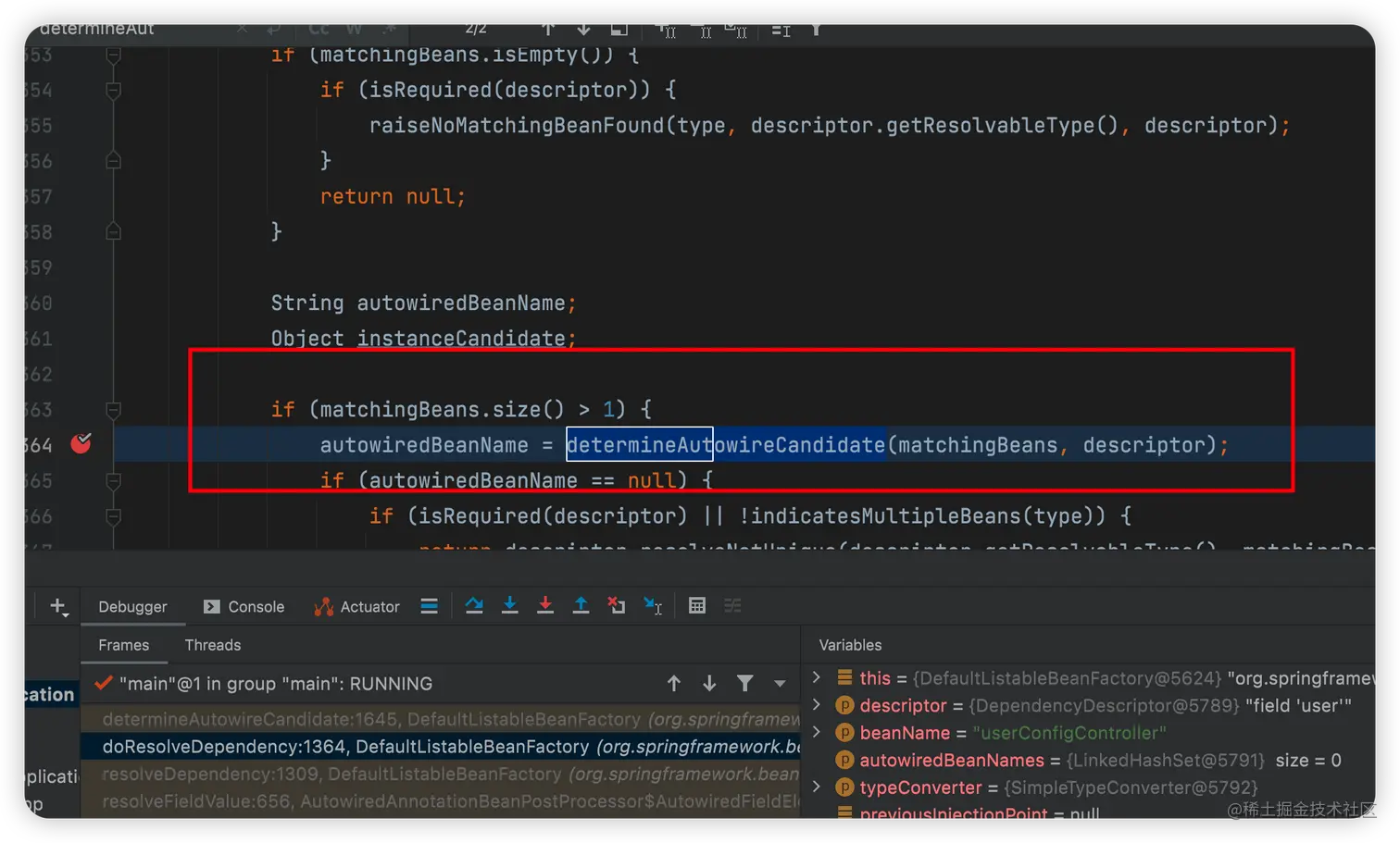 根据类型匹配到Bean有多个的情况,会调用determineAutowireCandidate()方法进一步去根据name匹配bean。