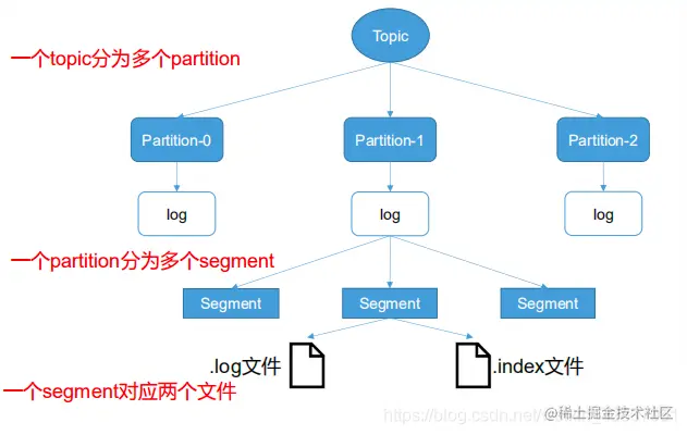 由于生产者生产的消息不断追加到 log 文件末尾,为防止 log 文件过大导致数据定位效率低下,Kafka 采取了分片和索引机制,将每个 partition 分为多个 segment。每个 segment 对应两个文件,“.index” 文件和 “.log 文件”。这些文件位于一个文件夹下,该文件夹命名规则为:topic 名称 + 分区序号。