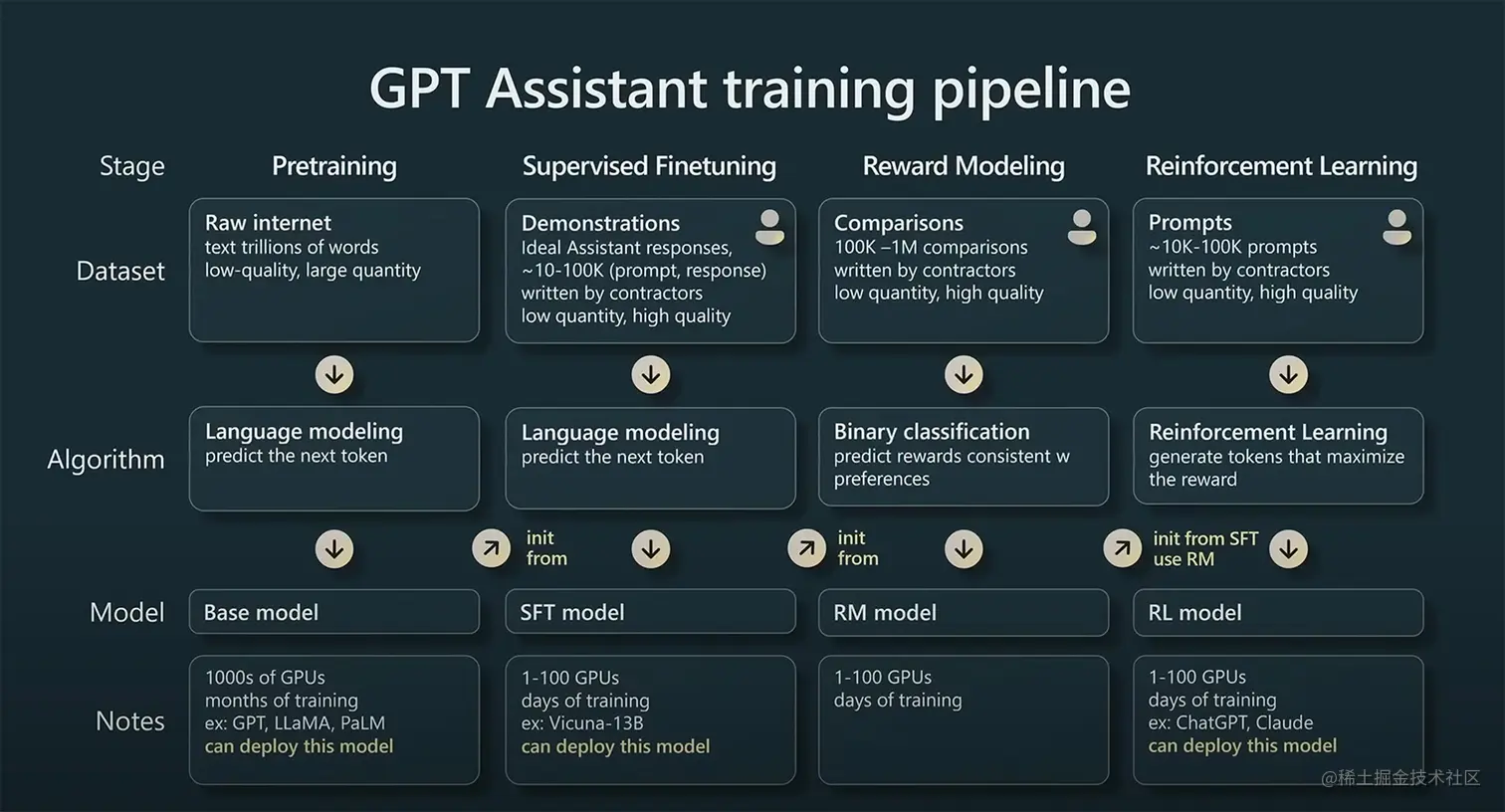 分四阶段训练GPT模型,来自Andrej Karpathy的演讲PDF State of GPT,视频 Video