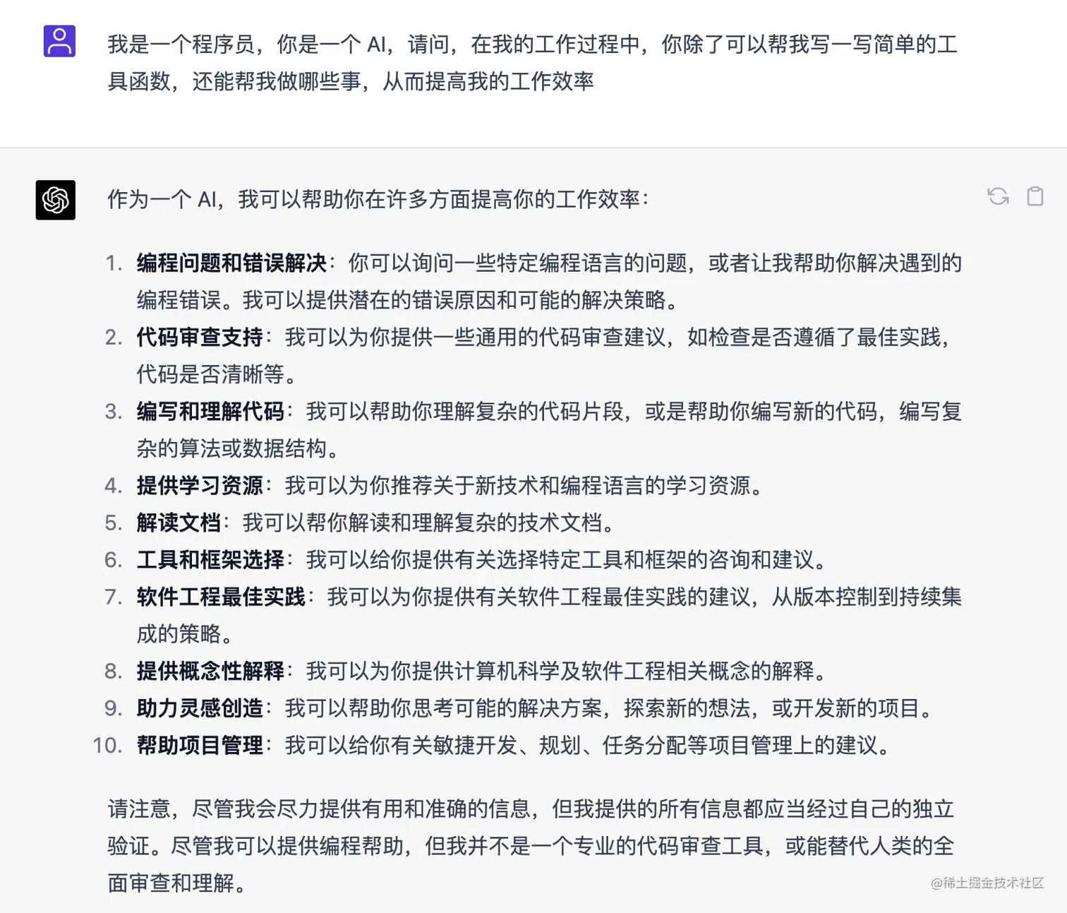 下面是 chatgpt 自己认为可以给程序员提供的能力和帮助: