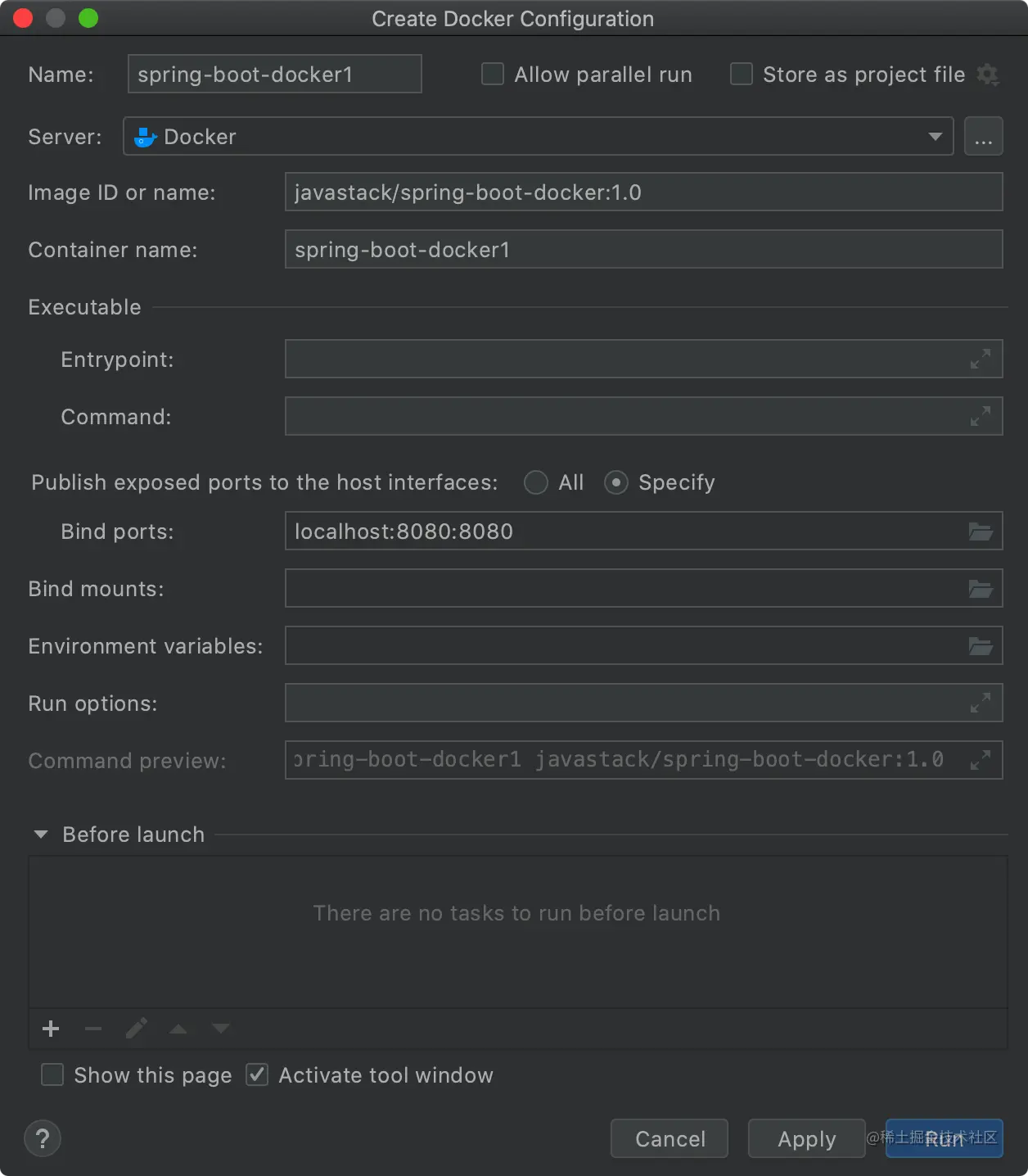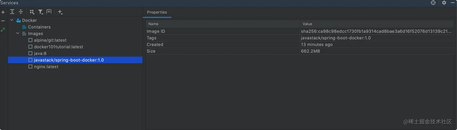 值得说一下的是,上面的 JAR_FILE 参数就是从 Docker Maven 插件中指定的构建参数,这也是这个插件的强大之处,可以翻到文章上面去看一下。