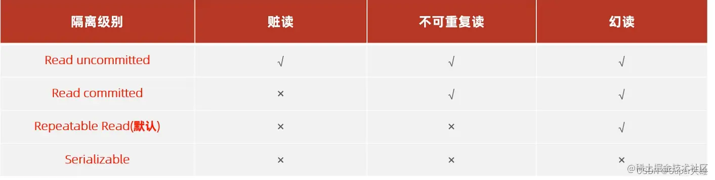 注意:事务的隔离级别越高,数据越安全,但是性能越低。