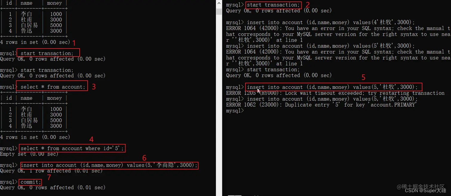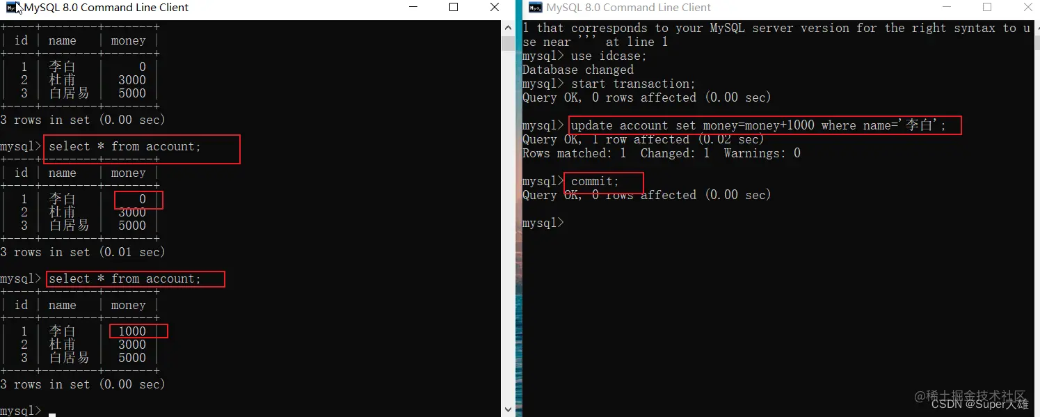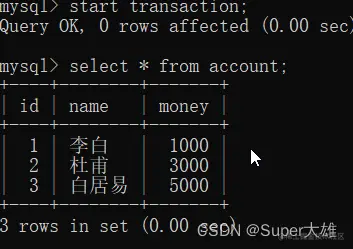 2.5.2.3 模拟转账流程 李白给杜甫转账1000元 (手动提交事务模式)