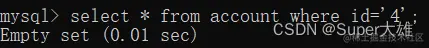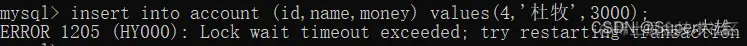 在第一个客户端插入数据出现错误,但是查询id=4的仍然为空