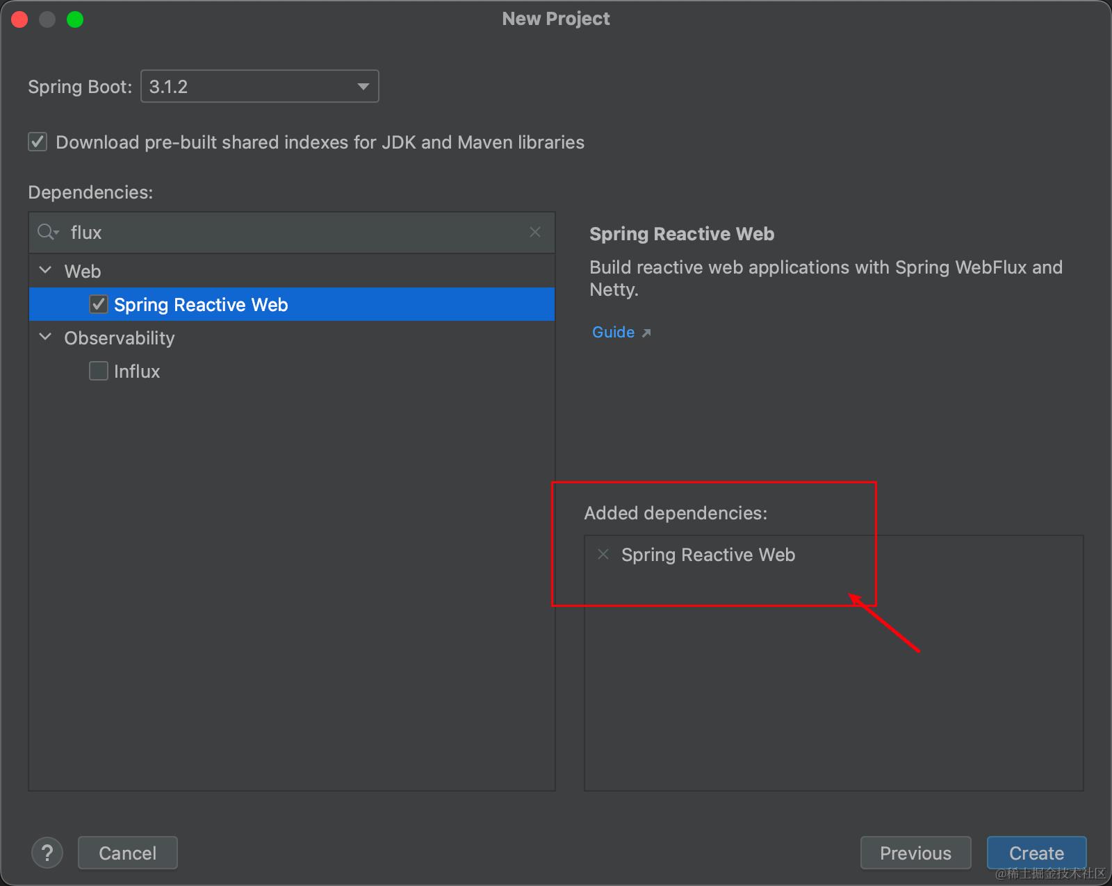 4.1 选择Spring Reactive Web 而不是 spring-boot-starter-web。