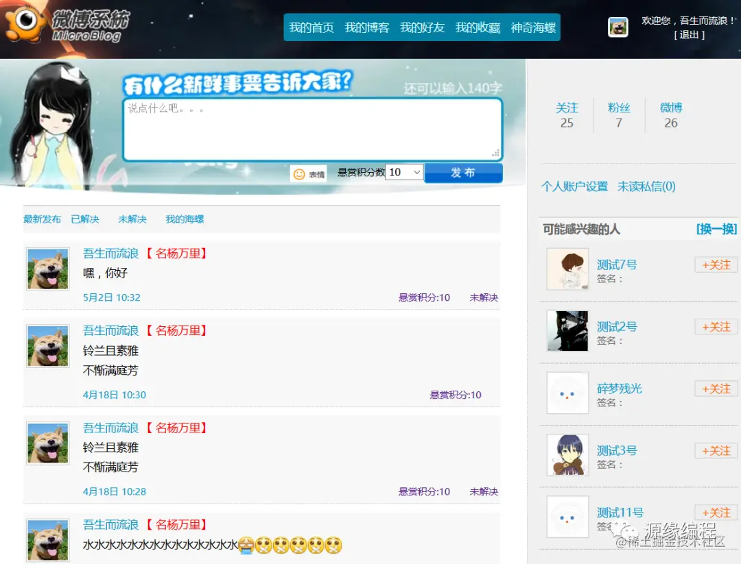 实现微博的发布、修改、查看功能;