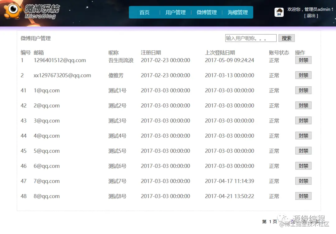 用户搜索、用户封禁