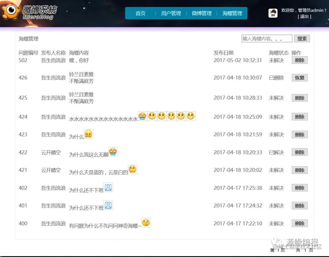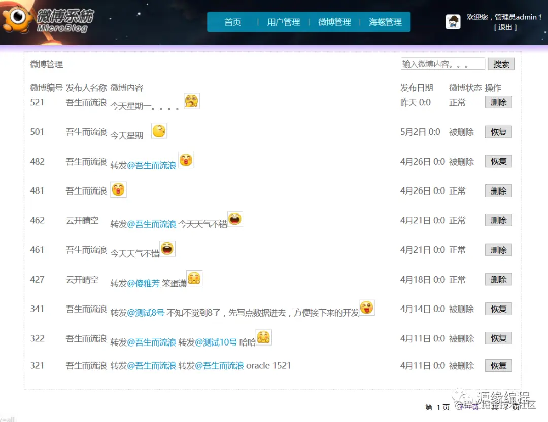 微博搜索、微博删除