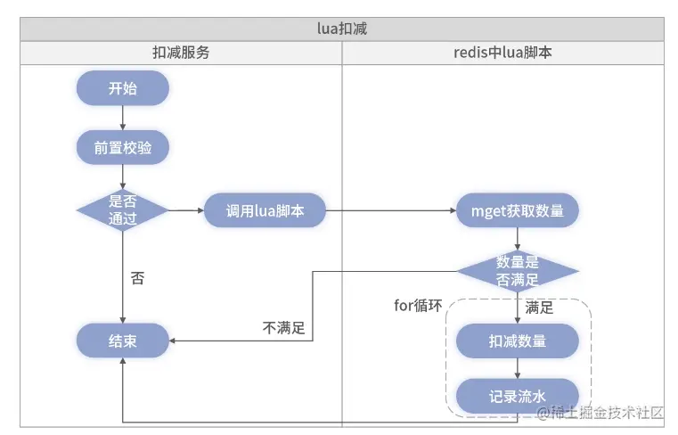 所有的扣减判断逻辑在 Redis 中的 Lua 脚本中执行,Lua 脚本执行完成之后返回是否成功给客户端。