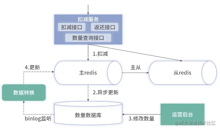 第二个是运营后台修改数据库数量后,同步至 Redis 的逻辑,使用 binlog 进行处理。