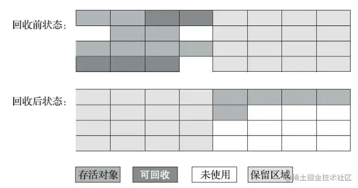 - 清除标记的死亡对象,不需要移动存活的对象