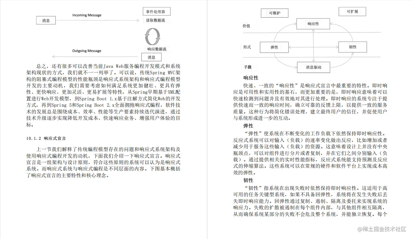 响应式编程(Reactive Programming)是相对于命令式编程的一种全新的编程模型,是基于数据流变化传播的编程范式。响应式编程具备快速响应、不可变性、高并发、异步非阻塞、规模扩展、代码可读性高等诸多优势。Java编程领域出现了众多基于响应式流规范的编程开发框架。本章我们会从响应式编程动机、响应式编程基本概念、响应式宣言开始介绍,引出响应式编程的基本特性(数据流、背压等)和核心概念。