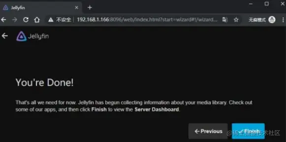 本地内网访问Jellyfin:打开支持Jellyfin的设备上的浏览器,输入你的Jellyfin服务器的地址和端口号,例如 http: //192.168 .1.100:8096 ,然后按照提示进行登录。登录成功后,你就可以访问你的媒体文件了。