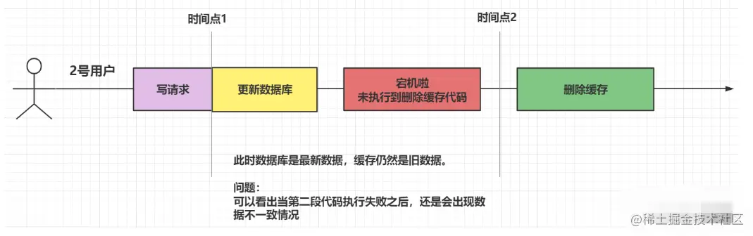 如果我成功更新了缓存,但是在执行更新数据库的那一步,服务器突然宕机了,那么此时,我的缓存中是最新的数据,而数据库中是旧的数据。