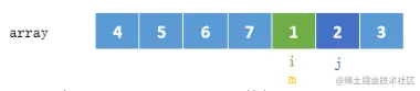 3、当 numbers[m] < numbers[j],执行 j = m,同时更新 m 的位置;