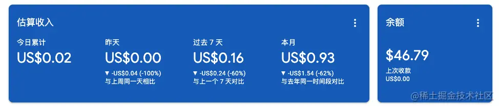 网站上挂了 Google Ads 平台广告,目前收入情况: