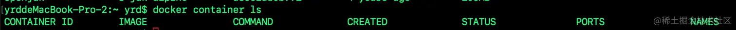 通过 docker container ls 命令查看全部处于运行状态的容器