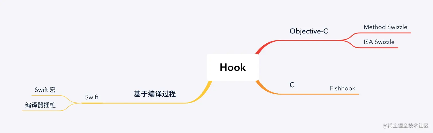 在 iOS 开发中,由于 Objective-C 动态语言特性和 Swift 语言的特性以及动态库的加载特性,通常有以下几种实现 Hook 的方式。