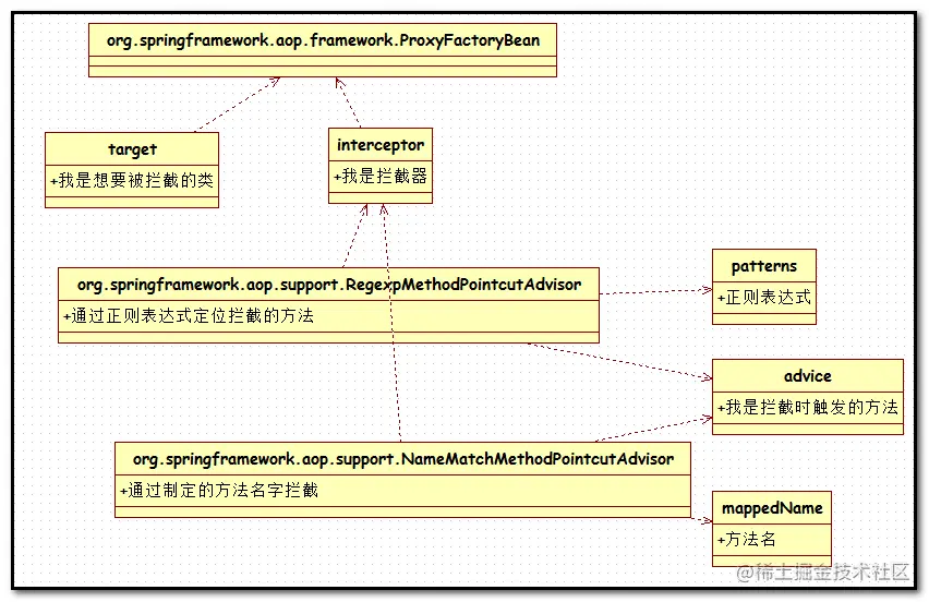不得不说,通过ProxyFactoryBean达到的面向切面的编程,过于复杂,光是那几个功能就要好好理解一番。