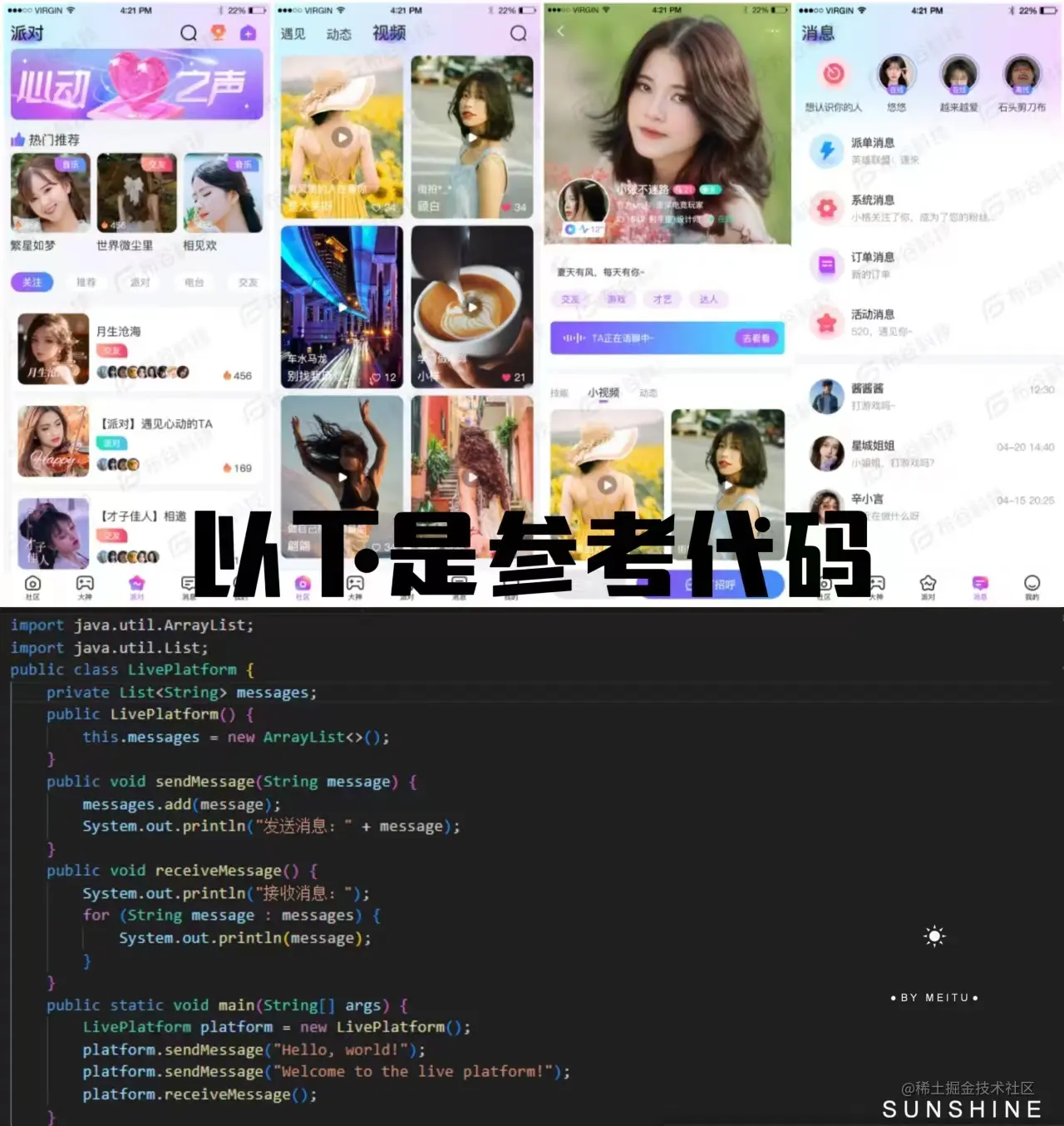import java.util.ArrayList;import java.util.List;public class LivePlatform { private List<String> messages; public LivePlatform() { this.messages = new ArrayList<>(); } public void sendMessage(String message) { messages.add(message); System.out.println("发送消息:" + message); }