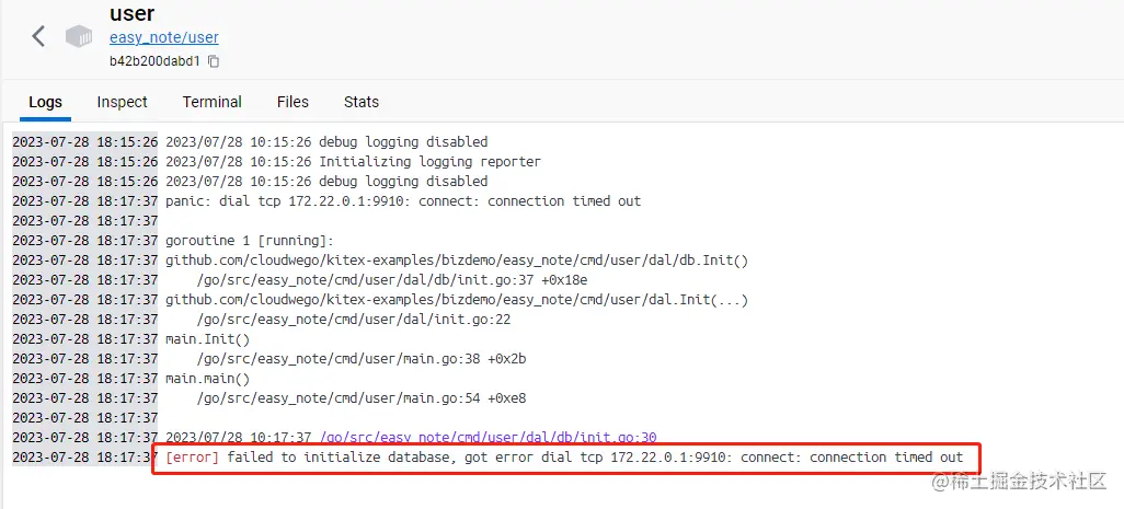 然而当我们执行 API 请求的时候,会发现 easy_note/user 和 easy/note 两个服务会宕机。