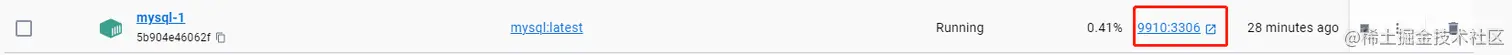 9910 端口是啥?我们在 docker desktop 中可以看到,9910 是 mysql 的映射端口。