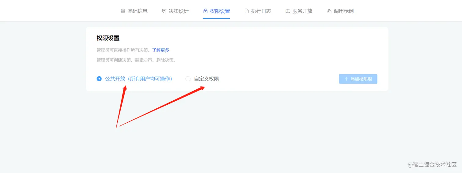 - 启动权限,是可以配置决策流处于可以被外部服务调用的有效状态;