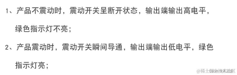 我们看商家提供的资料,知道写程序的时候,我们只需要检测P1^1的电平是否为低电平。如果是低电平,那么表示发生了震动,如果是高电平就是没有震动。