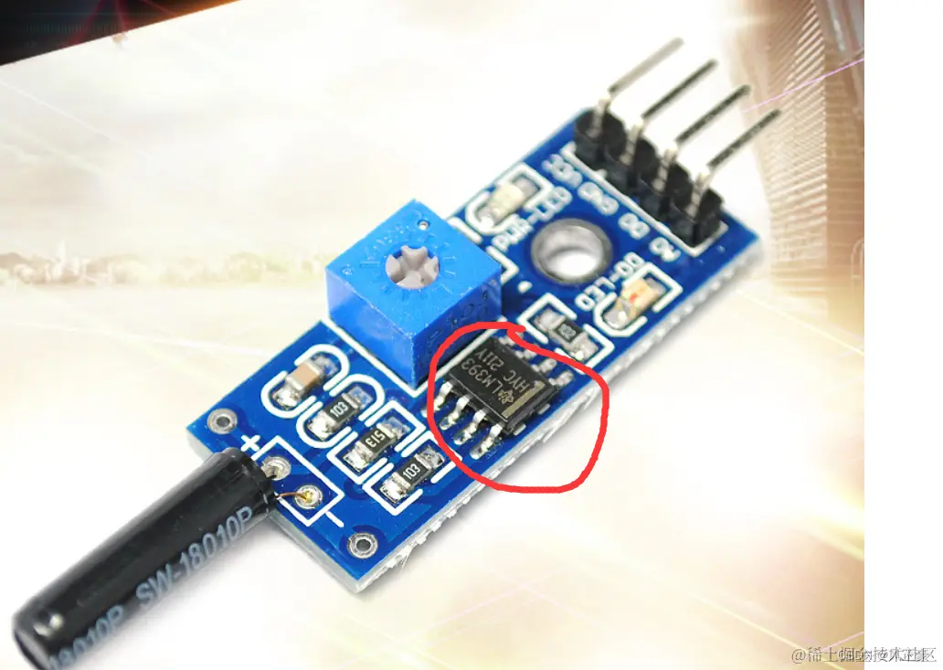 首先,我们了解一些LM393是什么的。一般我们在购买到一个模块的时候,能够看到模块上一般都要一个叫做LM393的芯片,这个芯片的作用就是用来做比较的,也称作比较器。当+输入端电位>-输入端电位时,LM393输出高电平。反过来,当+电位<-电位时,LM393会输出低电平。