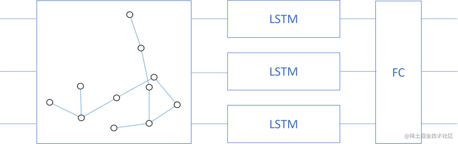 相关资料参见 Spatio-Temporal Graph Convolutional Networks: A Deep Learning Framework for Traffic Forecasting:arxiv.org/abs/1709.04… 本文采用了上方参考资料中介绍的图卷积(graph convolution)加 LSTM 的简化模型。模型首先需要根据传感器间的距离构建一张无向图,并使用图卷积作为模型的第一层,配合 LSTM 层可以使模型同时学习空间和时间的信息。