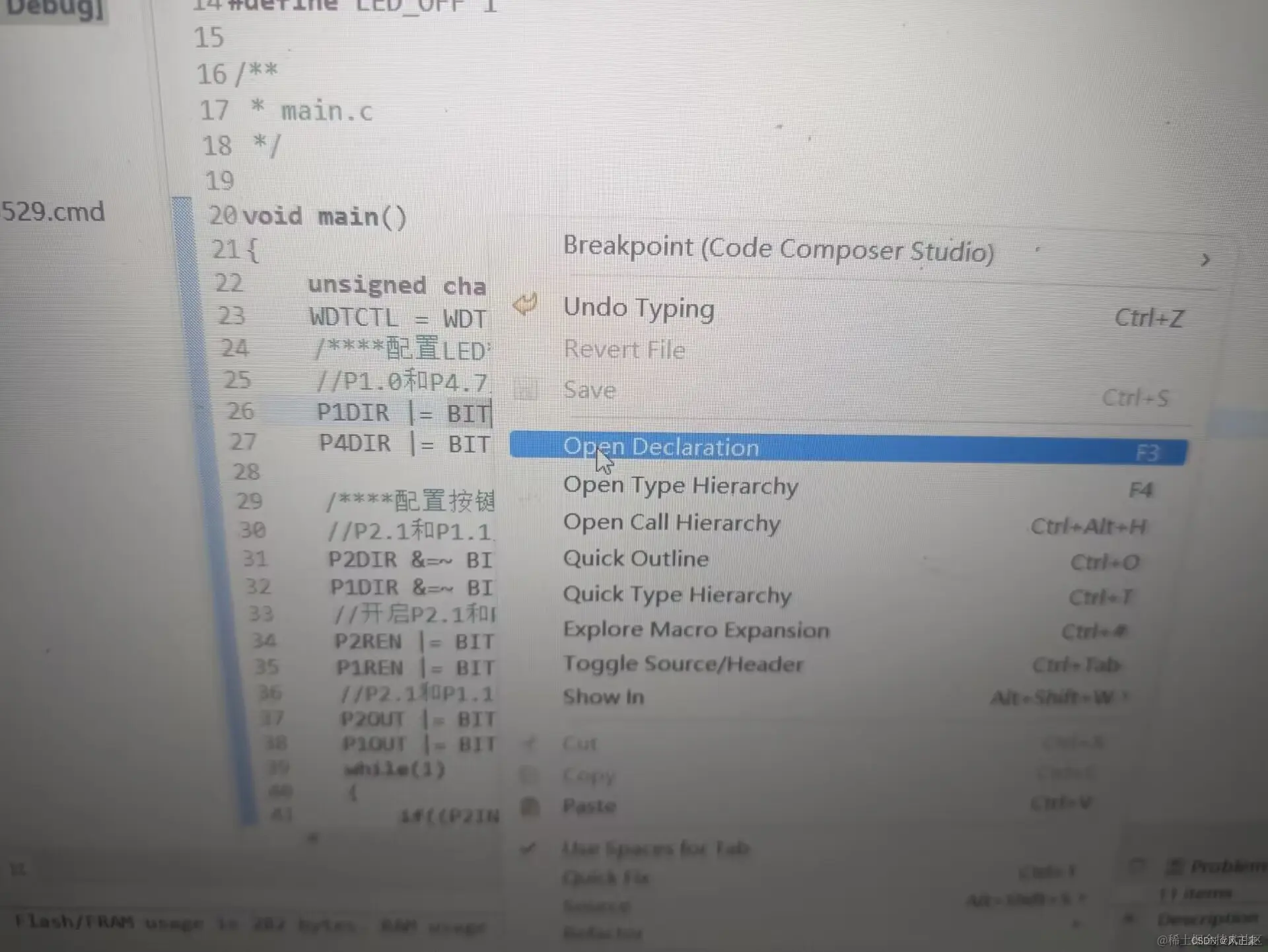 因为代码里面突然出现了一个BIT0,很多人不是很理解BIT0是什么意思,我们鼠标靠近BIT0——>右键——>点击Open Deciaration。