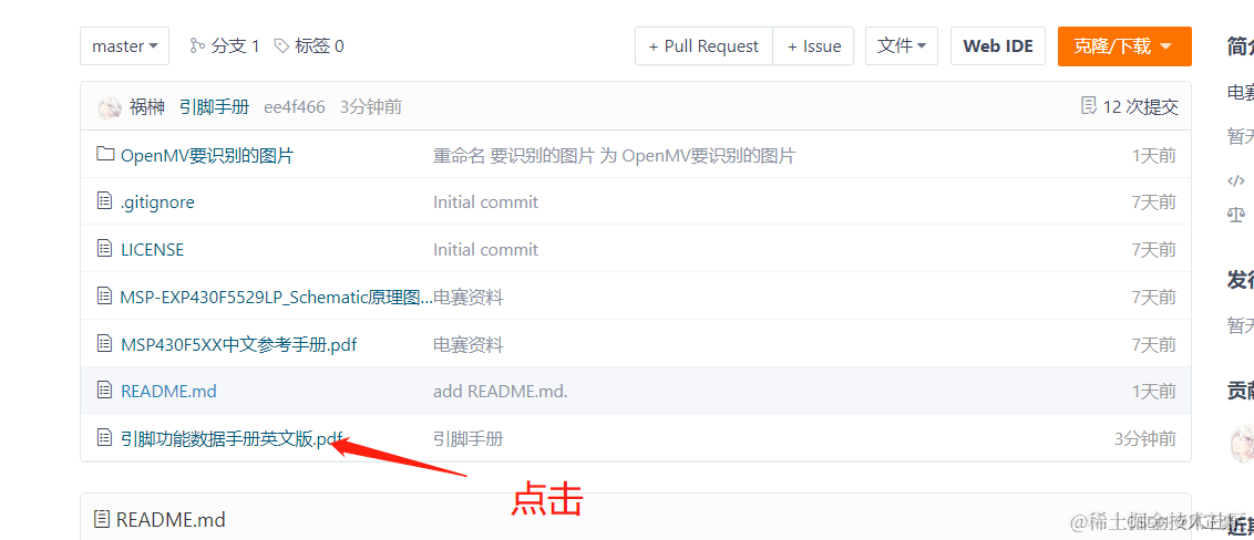 可能有人想知道这个怎么看,首先我们得获引脚手册。打开我的git仓库——>点击引脚功能数据手册英文版——>下载
