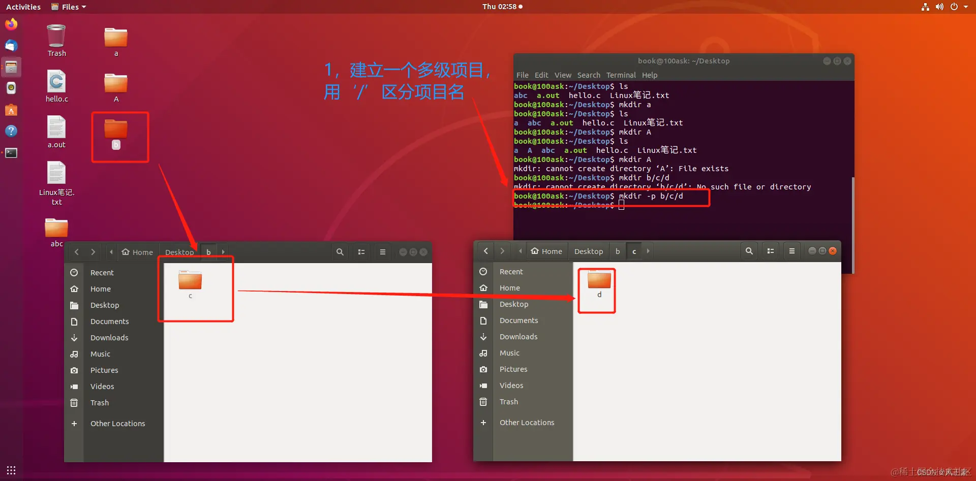 这个时候有人会觉得,如果我想一次性建一个多级目录(目录b中有目录c,目录c中有目录d)怎么做呢?