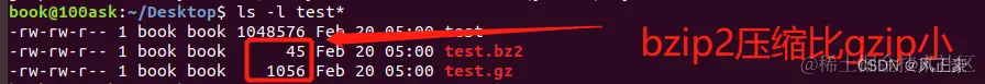 bzip2压缩率比gzip更高,所以最终产生的文件所占空间也小一些