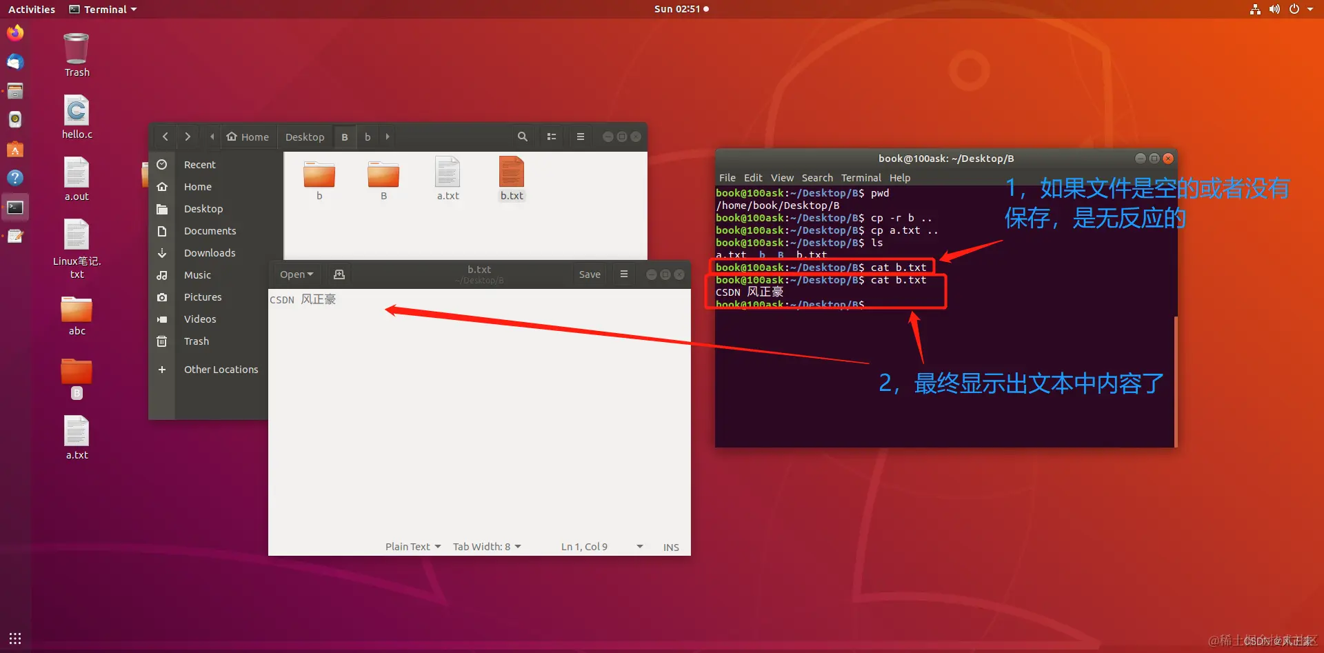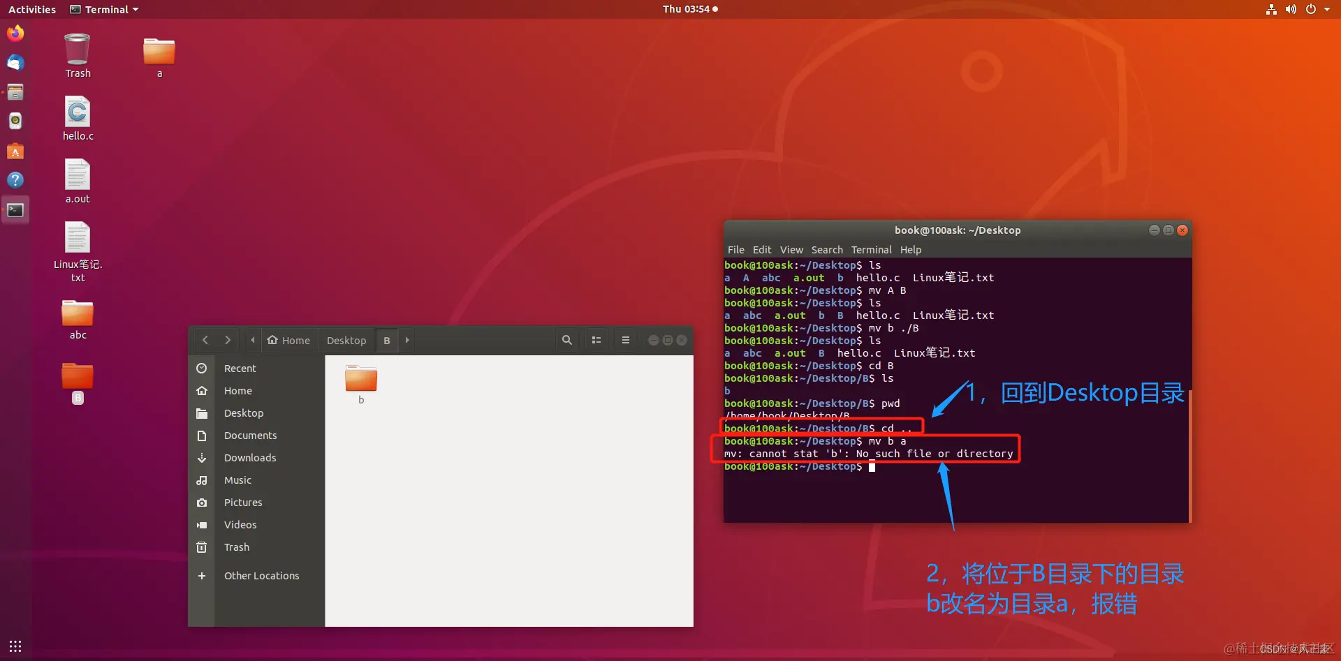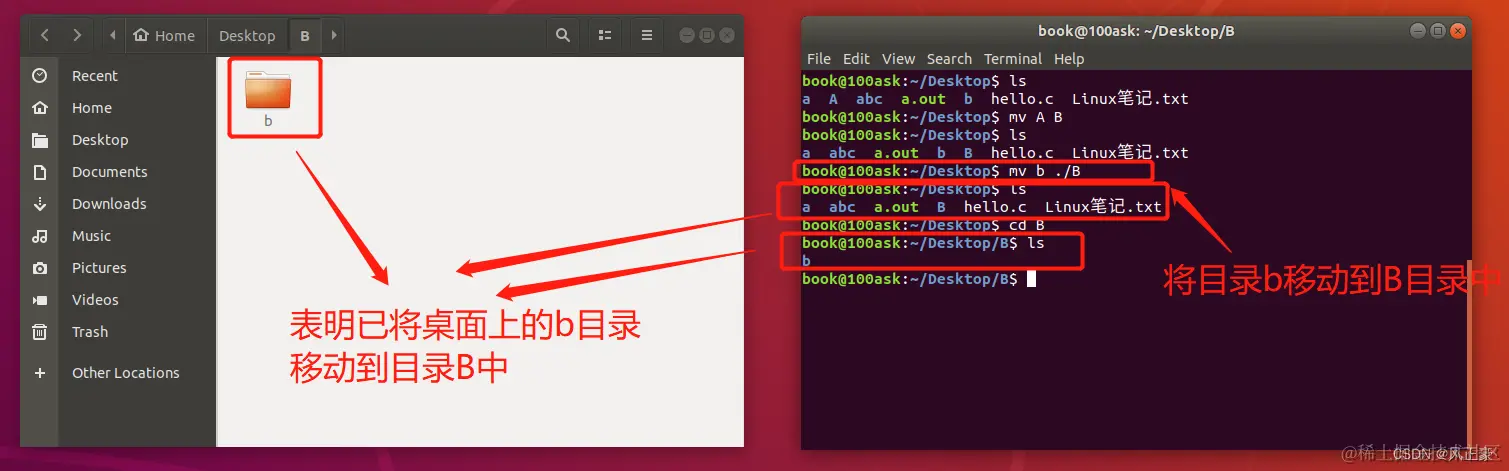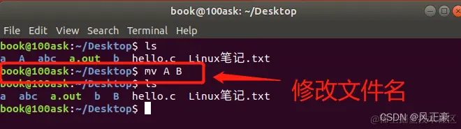通过上面这两张图,我们会发现,mv的移动文件和修改文件名字的操作似乎是一样的,如何区分呢?其实很简单,如果 要修改后的名字或者移动到的路径这一部分如果是路径(./B这种),那么就是移动,否则为改名。