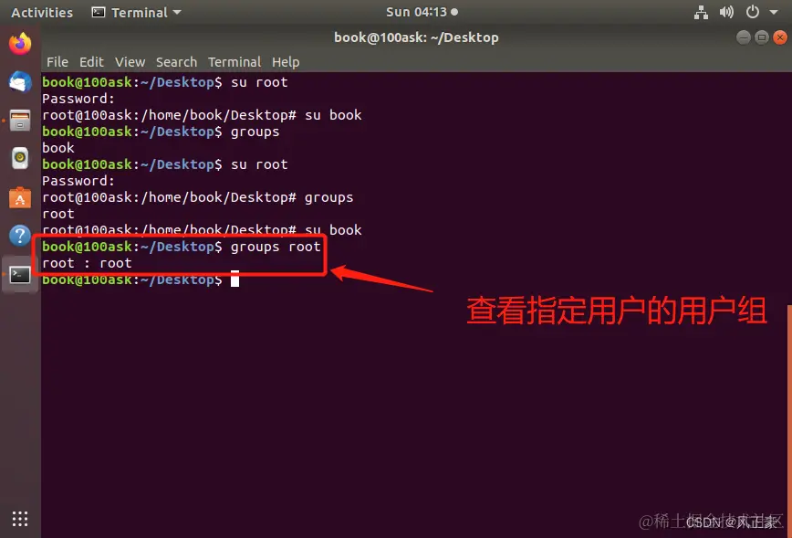 要查看用户的用户组,通过切换用户的方式多少有点麻烦。我们可以直接查看指定用户的用户组。