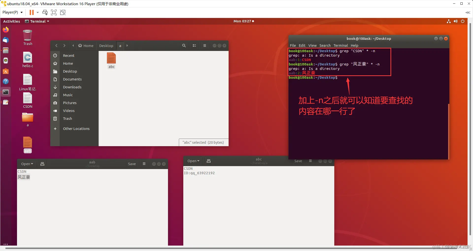 有时候,我们可能会想知道查找的内容在文件的第几行。这样方便我们快速查看到内容,加入-n即可实现。