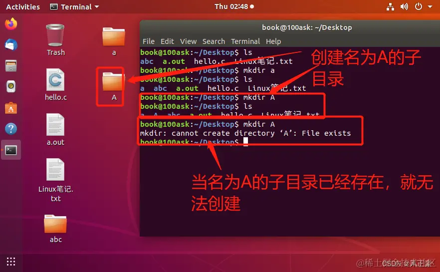2,当相同名字的目录存在时,无法创建目录。