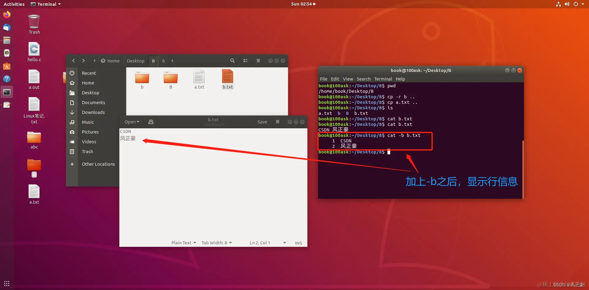 可能有一些人想看看文本的行编号,可以假如-b这条命令。