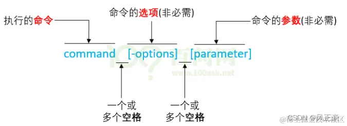 (2)Linux 命令一般由三部分组成:command 命令; options 选项;parameter 参数;