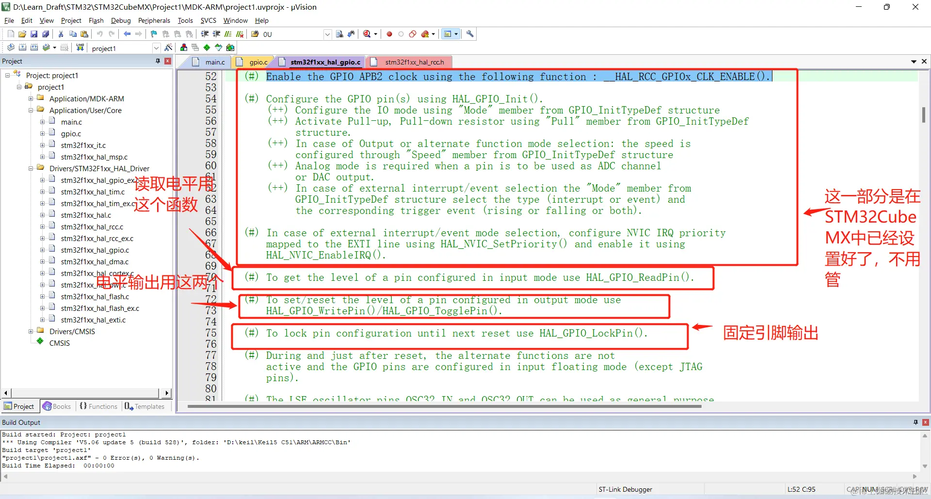 首先还是我们点灯的工程文件,本文我主要介绍GPIO相关库函数的使用。