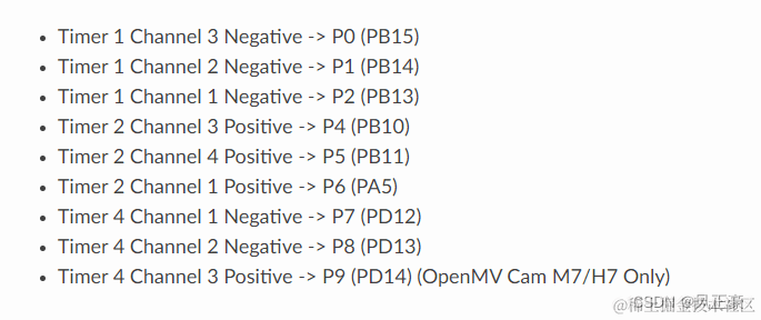 OpenMV其实就是一个STM32的单片机,相信绝大多数打比赛的人都是使用的STM32F103进行的入门学习。我们都知道,STM32可以进行硬件PWM的输出,他的1个定时器有4个通道。每个通道都能输出PWM。OpenMV亦是如此。