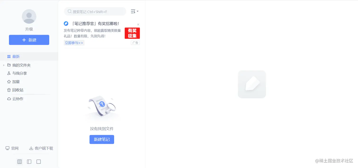 - **页面简介,易操作。**有道云笔记常用页面分为三栏式,功能作用一目了然,没有繁琐的适应学习过程,比较和操作