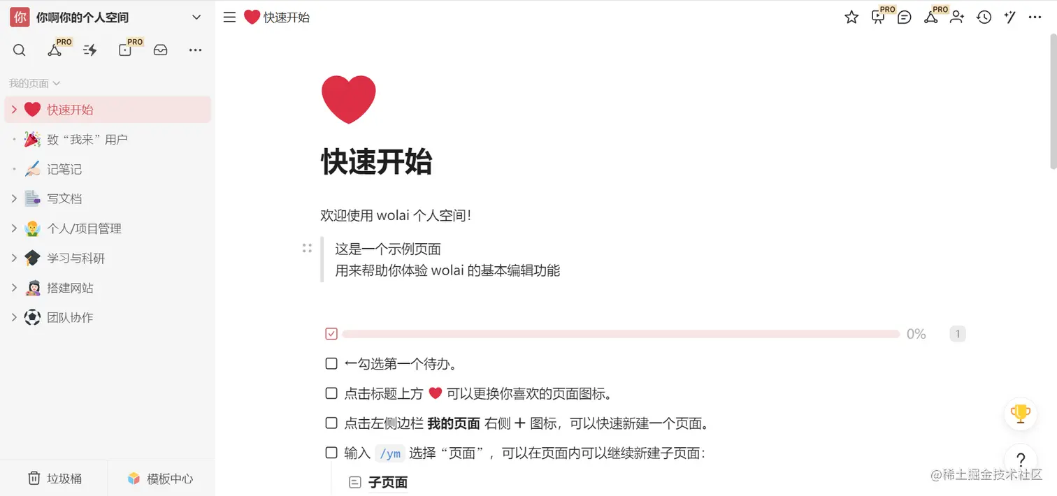 wolai以Notion为起点的中文笔记软件,随处可见的Notion的影子,同时又在Notion之上融入了国内的一些元素,使用体验可能更加适用国内用户,但是在文件大小和广告上,免费版的使用可能极为不便。